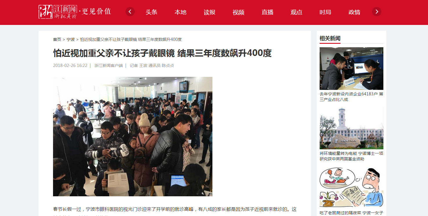 原来,淘淘10岁时,徐先生曾带着她来宁波市眼科医院检查眼睛,当时淘淘近视250度,医生建议进行治疗,佩戴眼镜。“我听说戴眼镜只会让孩子的近视度数越来越深,眼药水也不能滴都含有防腐剂的。所以我检查之后就走了,也没有进行任何的治疗。”徐先生说。