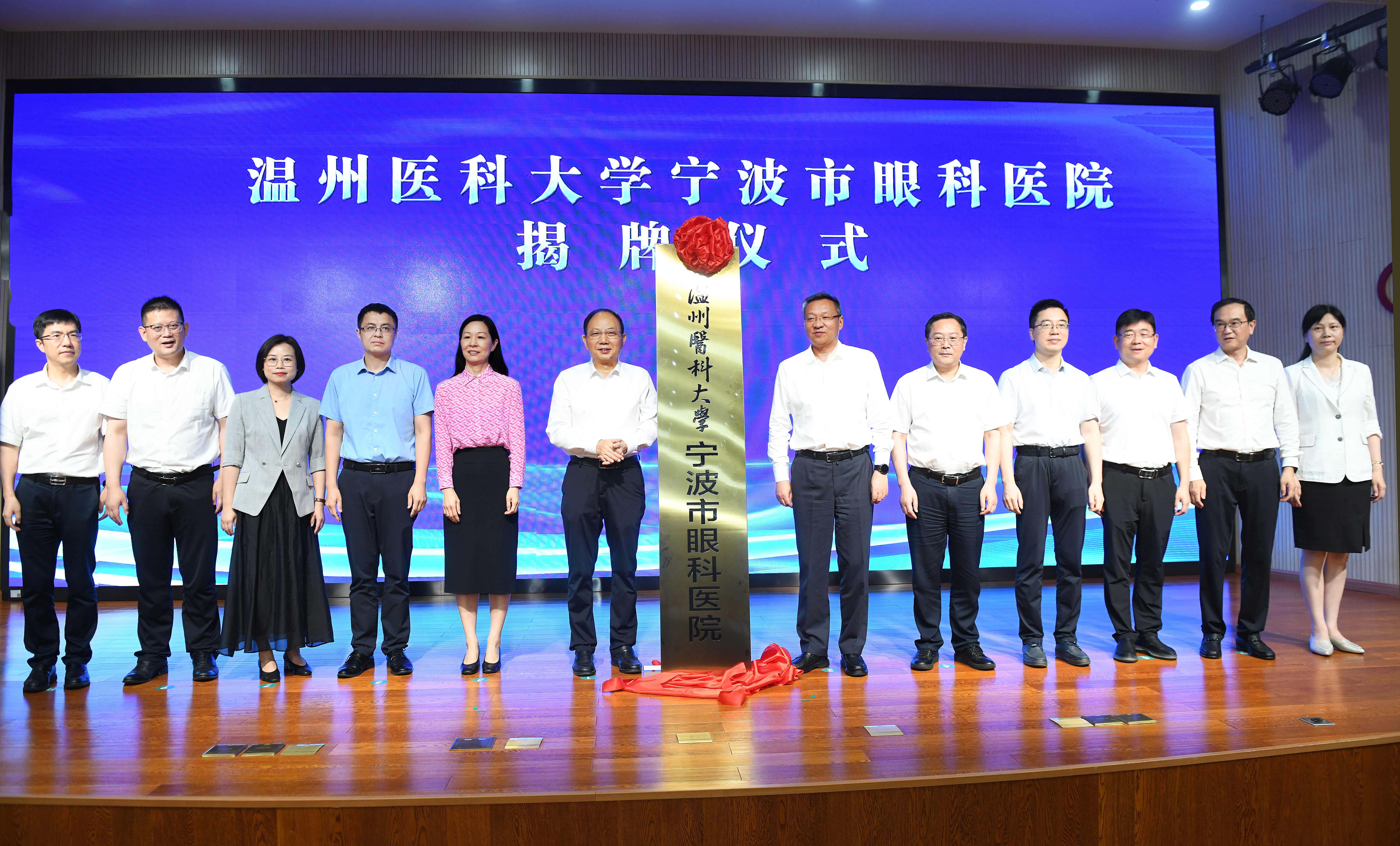 温州医科大学党委书记吕一军,宁波市委常委、鄞州区委书记沈敏共同为温州医科大学宁波市眼科医院揭牌。