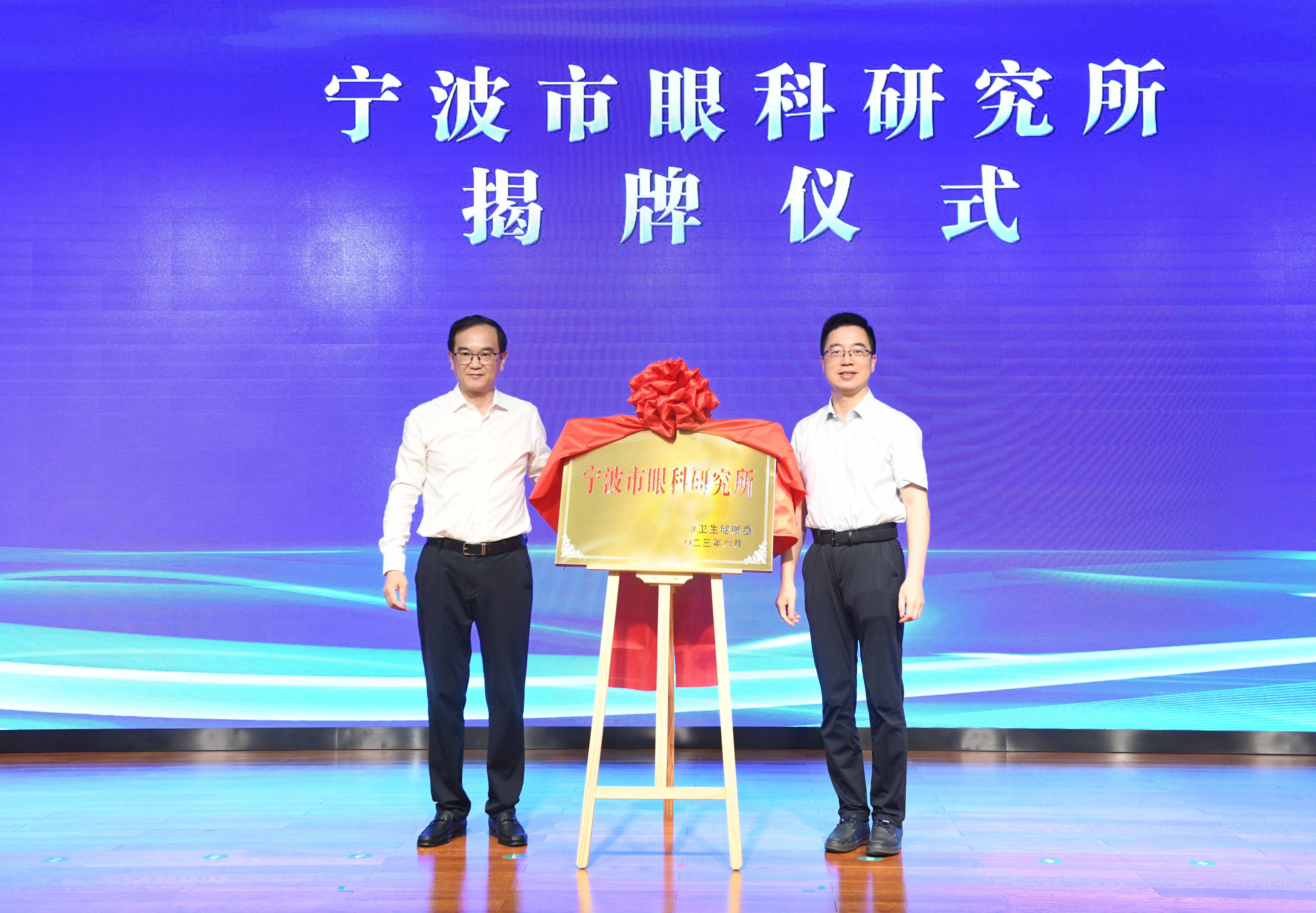 宁波市卫生健康委副主任王涌与鄞州区卫健局党委书记、局长水黎明共同为宁波市眼科研究所揭牌。